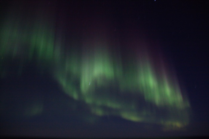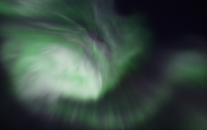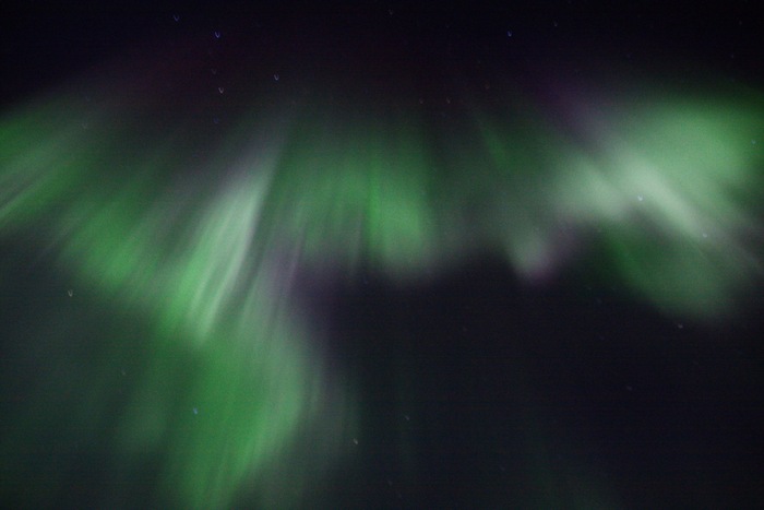 Впервые в жизни смотрели северное сияние. Красота неописуемая. Ни фото, ни видео передать не могут. Оно словно живое. Пока смотрел и снимал — замёрз как тот страус. Вроде, дальше насморка не пошло. Искусство требует жертв.