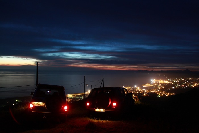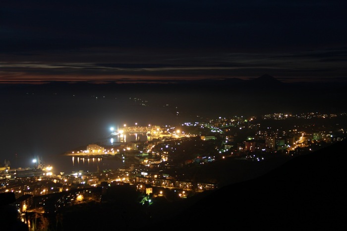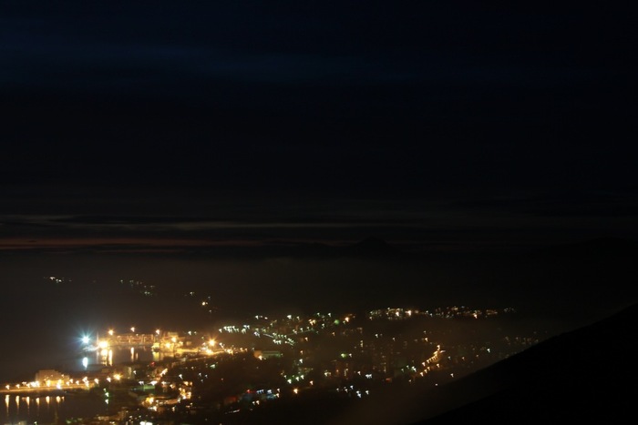 Потом была Авачинская губа. Аналогичная ситуация. Лишь верхушки вулканов в снежных шапках выдавались из пейзажа. Фотографировать нечего.