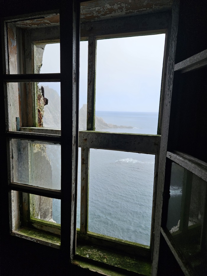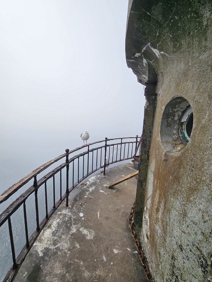 Потом ржавые лестницы.акумуляторы(последние года маяк работал на них. А вообще построен в 1939 японцами) и мы наверху.красивые виды и снова крикливые чайки)