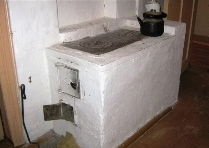 Именно эту печку топила Настенька долгими одинокими ночами. Она брала ведро, шла в угольник, ломом колола мерзлый уголь, лопатой насыпала уголь в ведро, открывала вернюю дверку печи, закладывала её специально заготовленными ДРОВАМИ (т.к. мерзлый уголь ты хер подожгешь), открывала поддувало (это нижняя дверка печи), ждала пока дрова разгорятся, открывала кочергой КОЛЬЦА (сверху печи), и высыпала ведро угля внутрь.