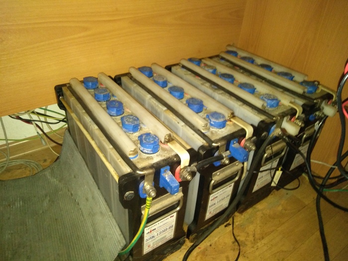 А чтоб этого хватило и на свет, и на компы, и тд у нас стояли 125 Ah щелочные аккумы