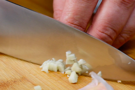 2) Чеснок пропустить через чеснокодавилку или мелко нарезать ножом, добавить к зелени.