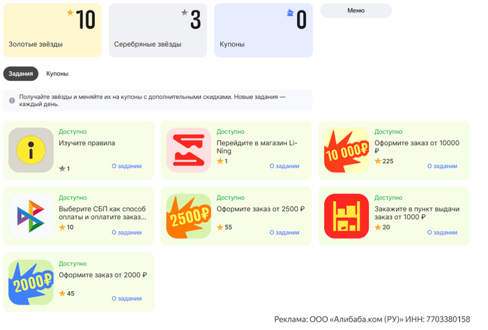 Реклама: ООО «Алибаба.ком (РУ)» ИНН: 7703380158