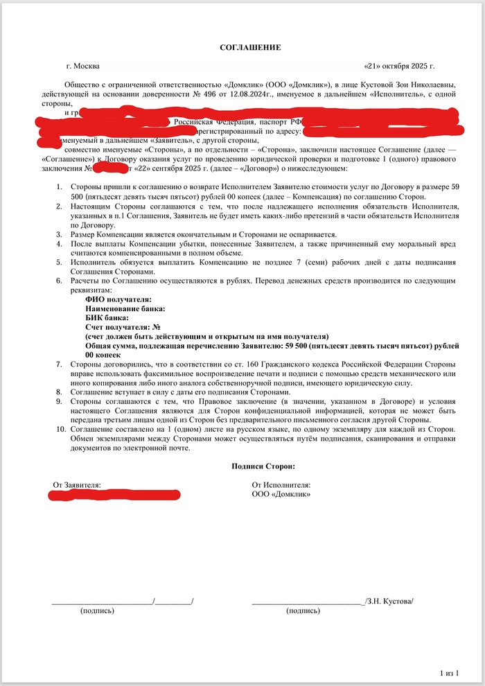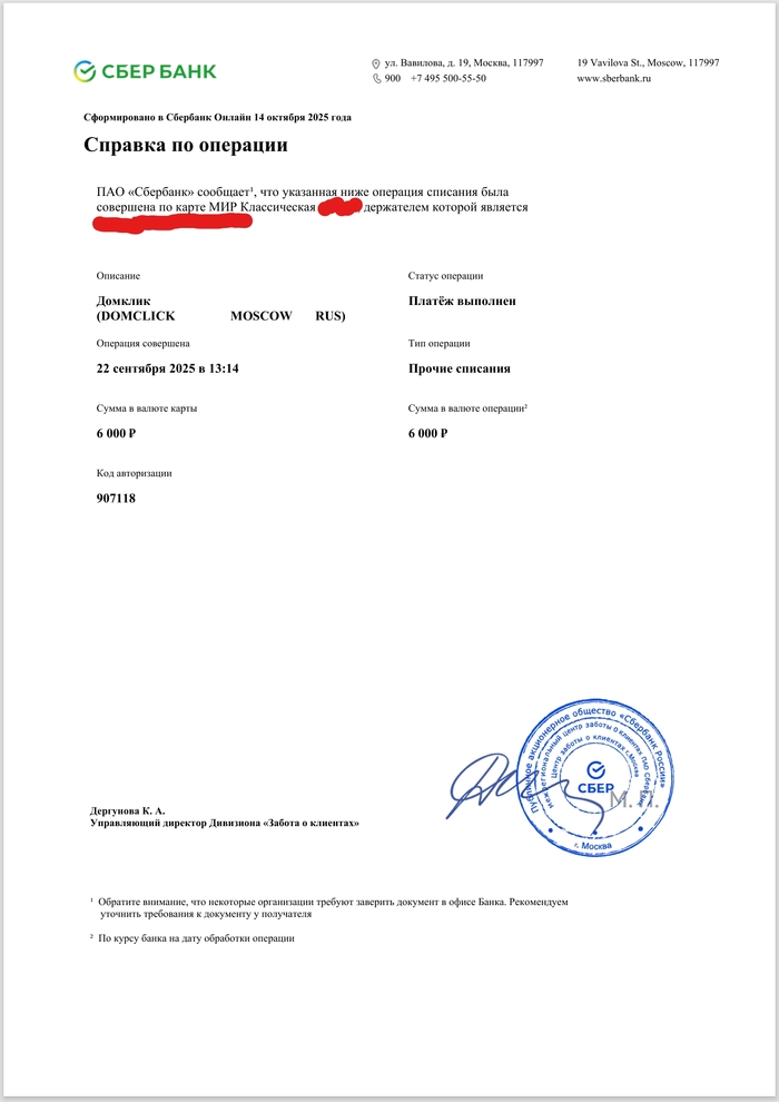 Доброго времени суток всем! Этот пост я решил написать не с целью вызвать жалость, а с целью чтоб предупредить тех кто будет сталкиваться с подобным или уже столкнулись. Я многодетный отец, у меня 9 несовершеннолетних детей. Накопили с женой сумму для оформления ипотеки, всех необходимых услуг и оплаты самой ипотеки на пару лет вперёд. Первоначальный взнос почти 700.000. Выбрали дом, старенький но жилой и в хорошем состоянии, от Ставрополя 15 минут езды на машине. Через домклик (сбербанк) начали оформление, загрузили все необходимые документы, и мы и продавец. Оплатили услуги: договор купли продажи 3900 р., оценка недвижимости 6000 р., и мне начал звонить менеджер от домклика (сбербанка) и начала убеждать оплатить услугу "юридическая проверка с гарантией". Мол без этой услуги невозможно выйти на сделку Я жалею что разговоры с менеджерами от домклика (сбербанка) не записывал, а это необходимо! И я оплатил эту услугу тоже, 59.500 р. Дому более 60 лет и домклик (сбербанк) отказался делать страховку, и страховку оформила сторонняя страховая компания.. Все проверки показали что и дом и продавец по документам юридически чисты, у меня и жены всё чисто, нет ни кредитов ни неоплаченных налогов ни штрафов. Сделка была межрегиональной и ровно за сутки мне приходит письмо от домклика (сбербанка) с отказом в выдаче ипотеки... я не могу им ни написать в чате приложения домклик (сбербанк) ни дозвониться... Меня просто заблокировали. Но что делать если деньги и притом огромные я потерял? От безысходности начал писать, в Центробанк, в домрф и в сбербанк. Скажу сразу, сбербанк не отвечает. А вот получив письма от центробанка и домрф, они мне сразу начали звонить и писать в чате приложения домклик (сбербанк). Обращение в центробанк и домрф дало эффект (кто из них помог я честно говоря особо не понимаю, думаю что центробанк), деньги мне вернули но сначала прислали договор. (Хотя позвонив с другого номера я узнал что деньги за оплаченные услуги домклик (сбербанк) не возвращает). Только после того как я его заполнил, мне вернули деньги. Всё кроме 6000 р. за оценку недвижимости, но я продолжу дальше писать обращения чтоб и эти деньги вернули. Ещё раз повторюсь, этот пост не с целью вызвать жалость но как предупреждение, если они кинули семью с 9-ю несовершеннолетними детьми....то что от них ожидать в отношении не многодетных?. Такие ситуации есть и со старыми домами как у нас и с новостройками. Конечно жаль что мы не смогли купить дом но ничего страшного. Всё впереди. Всем удачи!