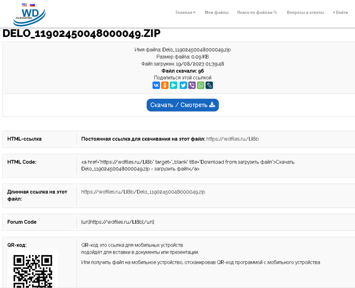 При переходе по ссылке мы попадаем на обыкновенный файлообменник