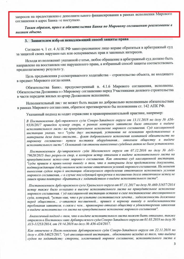 В двух словах, кому лень читать – застройщик все сделал как надо. У СБЕРа – вопросов к застройщику нет. Претензии можем предъявлять только мы, а жители нафиг идут. Вот и все. Возникает вопрос, а школа то где? А это не предмет данного спора и если хотите что-то узнать пишите письменный запрос на почту. Пурупупупу фьють.