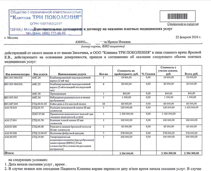 Мы узнали что есть процедура HIPEC. Собрали деньги что были. Мама съездила на консультацию. Конечно ей сообщили баснословную для нас сумму 2,3 млн. Это очень много. Чем быстрее сделать эту процедуру тем лучше.