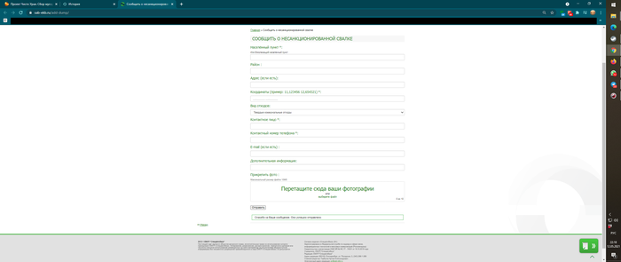 Продолжаю экспериментировать с официальными запросами на вывоз несанкционированных свалок.