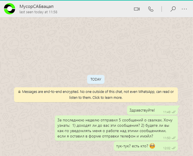 В прошлых постах я писал, что телефон помеченный на сайте СпецАвтоБазы как контакт по свалкам "временно отключён".