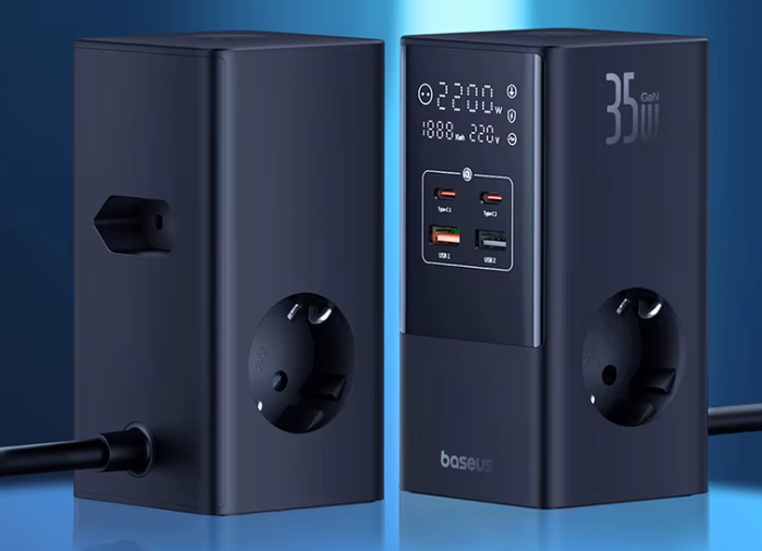 17. Baseus Быстрое зарядное устройство 35 Вт Многофункциональное зарядное устройство с цифровым дисплеем и возможностью подключения нескольких устройств. Поддерживает быструю зарядку до 35 Вт, оснащено 7 разъемами и продуманной системой защиты от перегрева.