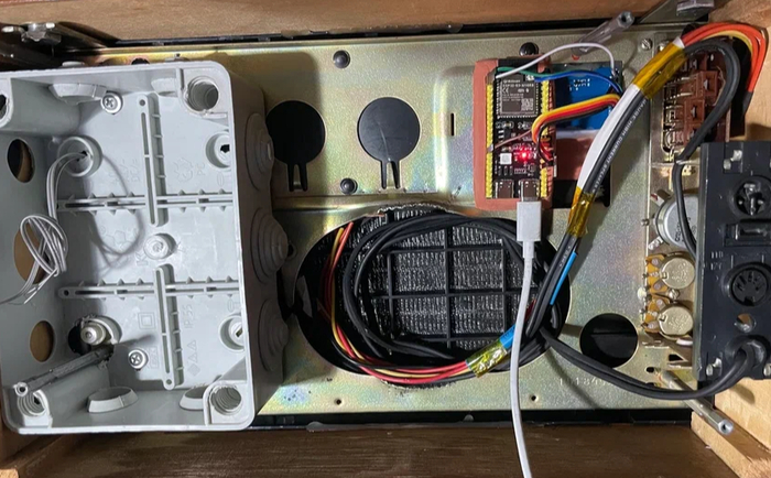 Построил на базе старого (не рабочего) радиоприёмника колонку с Алисой. Модифицированная версия с интегрированной Алисой и модулем ESP. Зашил 10 сценариев анимации глаз*, связал ESP с платой Алисы для реакции и изменения цвета на дисплее. +Восстановил старый корпус самого приёмника. +Добавил разьем для зарядки Type-C