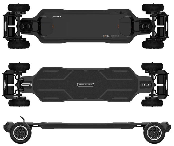 Exway Atlas Pro 4WD — это мощный и надёжный электрический скейтборд для любителей скорости и приключений. Четыре ведущих колеса обеспечивают отличное сцепление с дорогой и позволяют преодолевать сложные участки. Скейтборд управляется с помощью беспроводного пульта и имеет ёмкий аккумулятор, что позволяет наслаждаться поездками на большие расстояния.