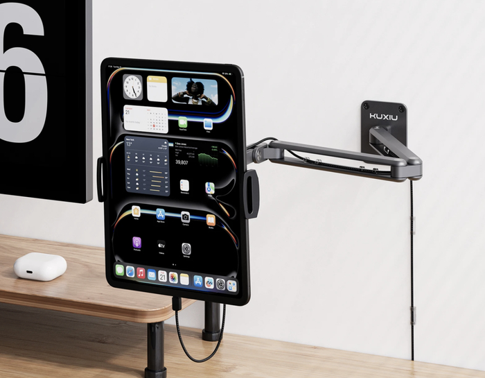 KUXIU — это универсальное решение для размещения планшета в любом помещении. Этот настенный держатель подходит для устройств с диагональю от 7 до 15.6 дюймов и позволяет надёжно закрепить планшет на стене. Идеально подходит для просмотра рецептов на кухне, видео в спальне или презентаций в офисе.