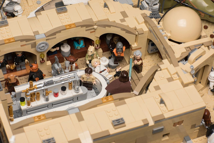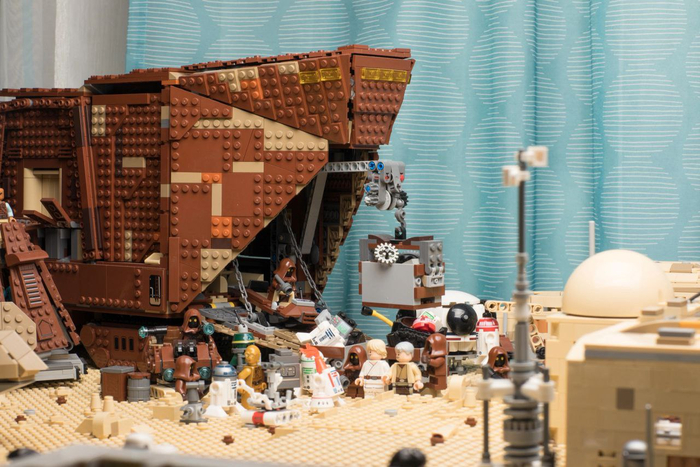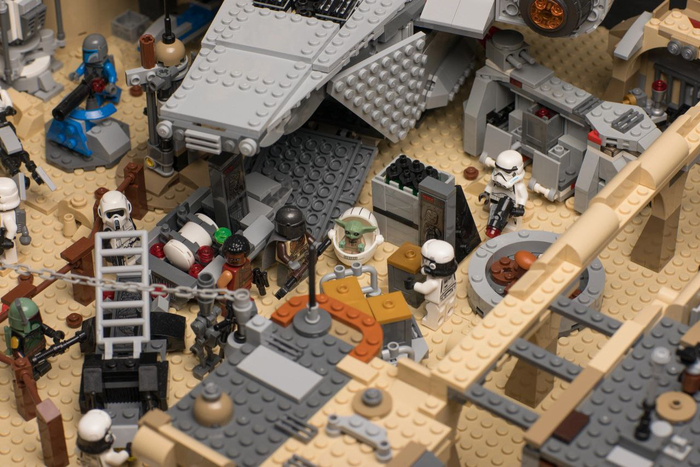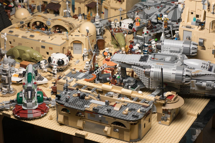 Основные здания построены из 75290 Mos Eisley Cantina по купленным в интернете кастомным инструкциям (так что, наверно, MOC'ом это не назвать). Ушло несколько месяцев только на покупку 10699 Sand Baseplate 32x32, так как их потребовалось большое количество, а в продаже уже давно нет»