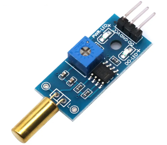 Этот модуль создан, чтобы «чувствовать» прикосновения или толчки. В его сердце находится вибрационный элемент SW-18015, который замыкает цепь при вибрации или ударе. То есть любой толчок, стук или вибрация мгновенно фиксируются и преобразуются в электрический сигнал, который можно обработать микроконтроллером.