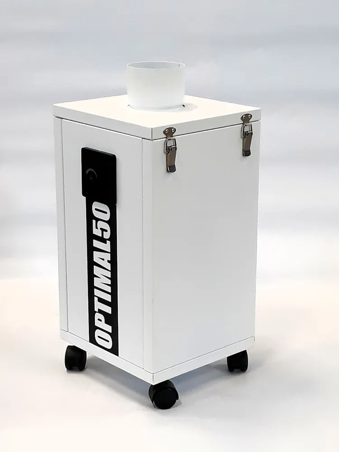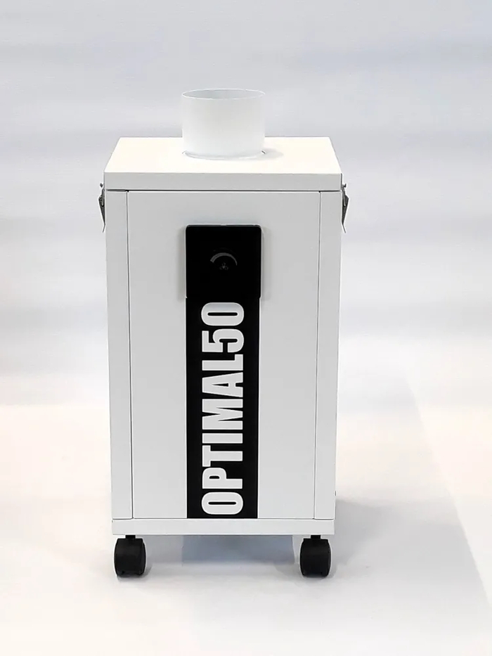 Блок дымоуловителя OPTIMAL50 - базовый дымоуловитель на одно рабочее место для работы с пайкой, DTF принтерами, клеями и растворителями и небольшого паяльного оборудования, такого как небольшие конвекционные печи, инфракрасные паяльные станции, тигели, термостолы или ванны для лужения. Увеличенный диаметр воздуховодов обеспечивает максимальную производительность, что особенно важно для работы с рассеянными источниками дыма.