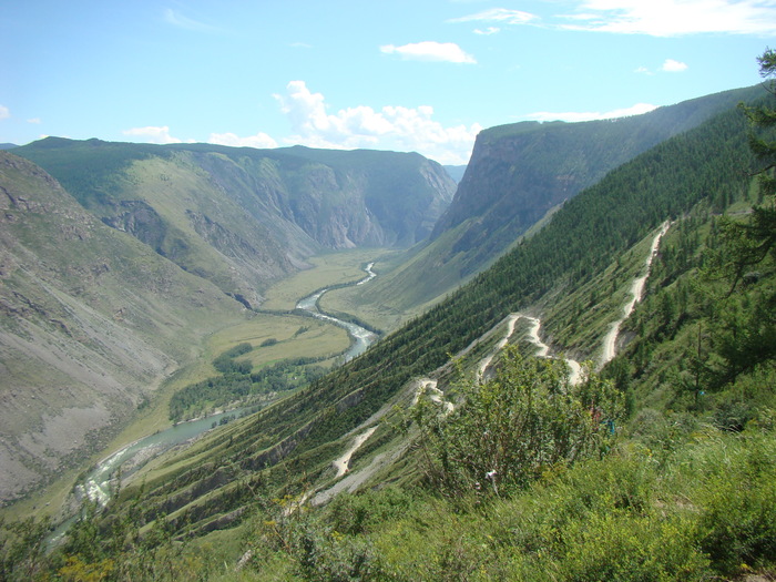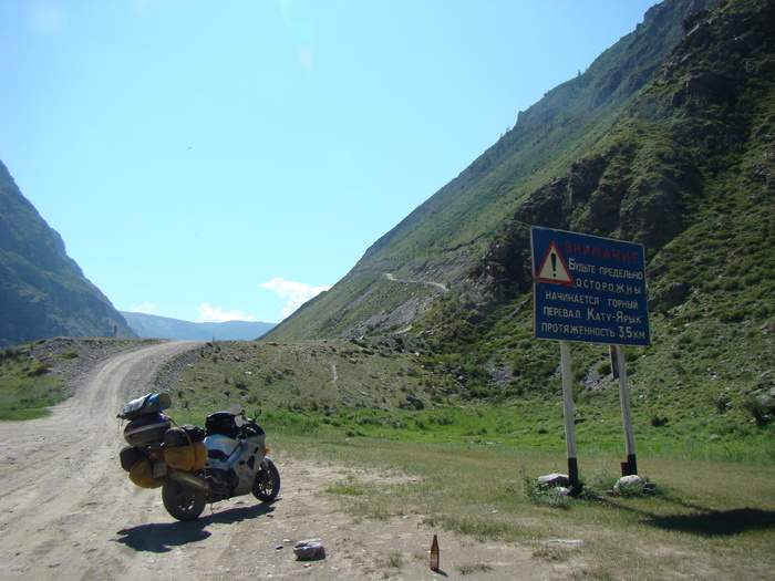 На этом наше продвижение на юг закончилось, и, развернув мотоцикл, мы поехали смотреть красоты Чуйского тракта, которые ещё не видели, а таковых было большое множество.
