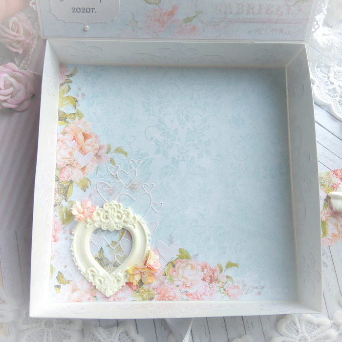 Внутри подпись и чуть тоже украшений. Пластиковое сердечко и цветочки.