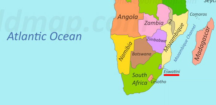 Эсватини - это совсем небольшой овал на самом юге Африки, размеры которого удивительны на фоне его огромных соседей