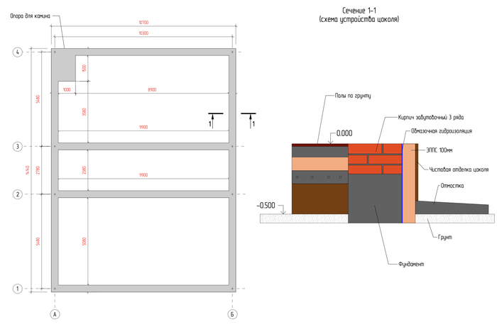 Лаги в теплом контуре с шагом 630 мм, на террасе 400 мм, под всеми несущими стенами расположены перемычки для передачи нагрузки непосредственно на ростверк.