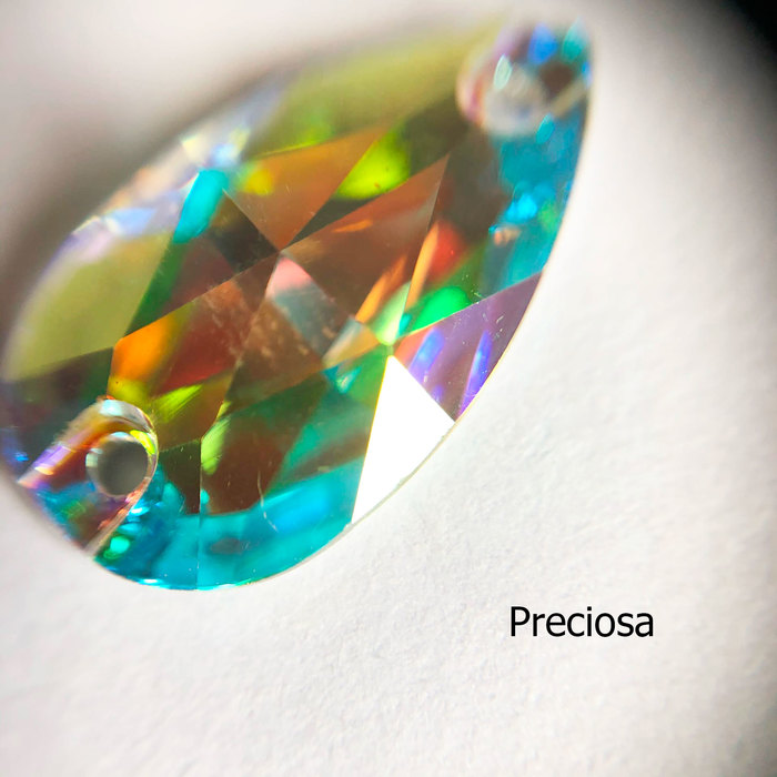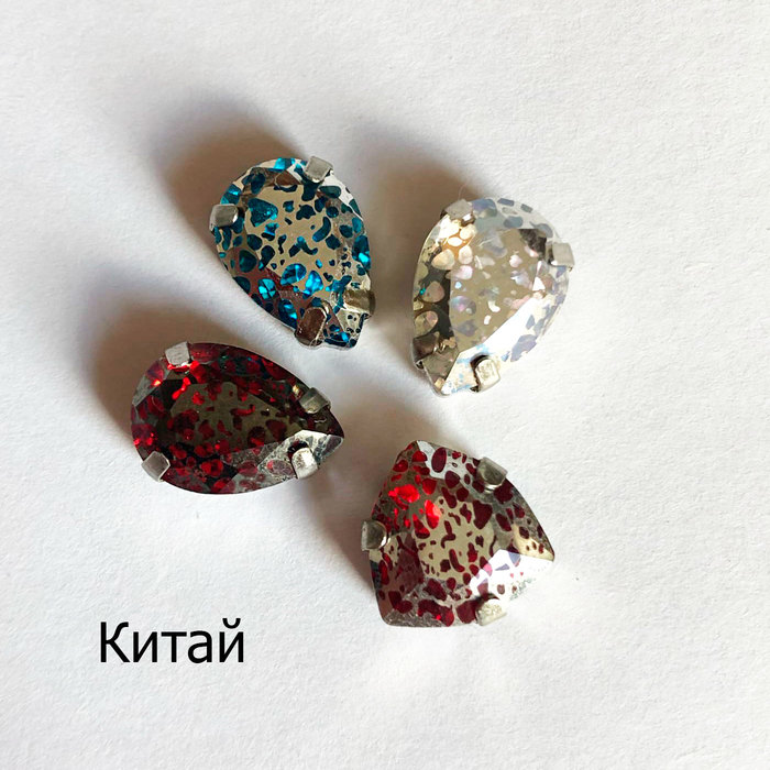 Первое, с чего я хочу начать — огранка кристаллов. К сожалению, совпасть хотя бы по формам я смогла только дважды: капли 14х10 мм под оправы, и капли 18х10 пришивные (с двумя дырочками по краям).