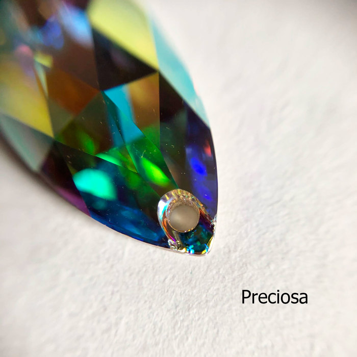 В плане покрытия, конечно, надо бы ещё поговорить о верхнем покрытии — эффект aurora borealis (он же сокращённо AB — северное сияние так называемое), shimmer (AB на минималках) и patina. Всеми тремя может похвастаться только Австрия, у Чехии есть только АВ и только на прозрачных кристаллах, Китай вроде не имеет шиммера, однако я не могу быть уверена на 100%, возможно, они мне просто пока не встречались. Тут Сваровски занимает первое место, Preciosa второе, либо мне всё ещё катастрофически везёт с выборкой, а вот Китай наиболее часто имеет царапины на лицевых частях кристаллов. Однако, к их чести, качество покрытия сейчас уже ощутимо выросло, так что царапины можно разглядеть разве что в макро, и прям «облезлых» кристаллов, как раньше, мне не попадается больше.