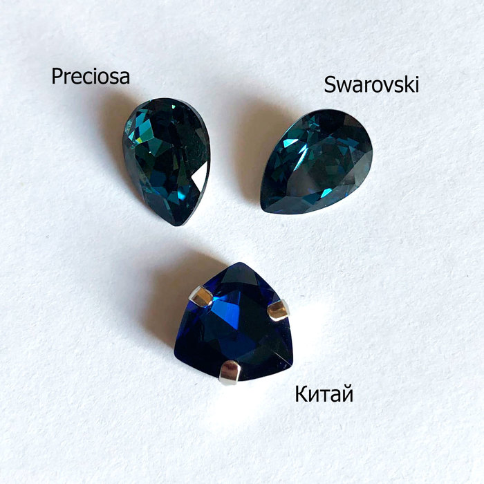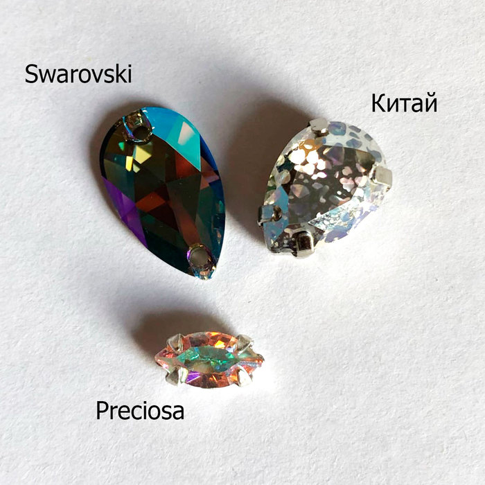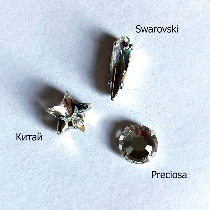 Мы остановились на сравнении пришивных кристаллов трёх производителей: Swarovski (Австрия), Preciosa (Чехия) и безымянного Китая.