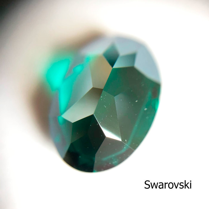 Что касается цвета Emerald. У меня есть овал и шатон (круглый) от Сваровски, чешская капля и китайский квадрат. У овала есть нюанс — это относительно новые кристаллы без подложки, т.е. прозрачные насквозь. В светлых оттенках этот эффект не заметен от слова совсем, кристаллы с подложкой и без не отличаются в работе вообще, в тёмном он более явен.