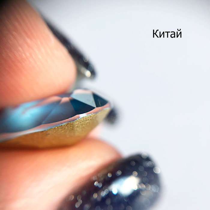 Если говорить в целом о внешнем виде, то в случае Сваровски брак ничтожно мал, Чехия меня не порадовала качеством, Китай прям занимает уверенное третье место. Тут процент брака весьма велик, но это ожидаемо, поэтому не вызывает возмущения, царапины и сколы присутствуют на довольно внушительном количестве кристаллов. Чехию же ставит выше Китая конкретно сейчас только тот факт, что у меня достаточно маленькая выборка.