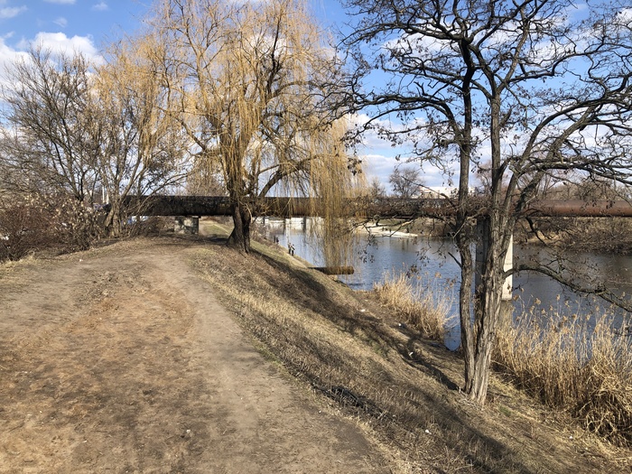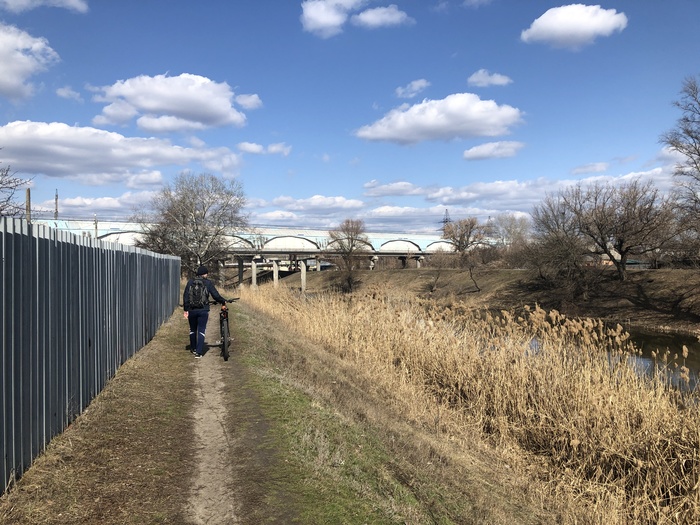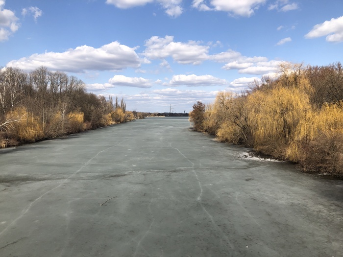 [моё] Велосипед Фотография Сварог Перун Чур Дамба Метромост Харьков Река Остров Лед Велопрогулка Прогулка Мост Длиннопост