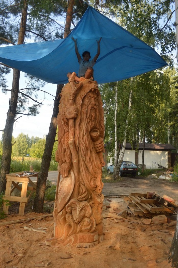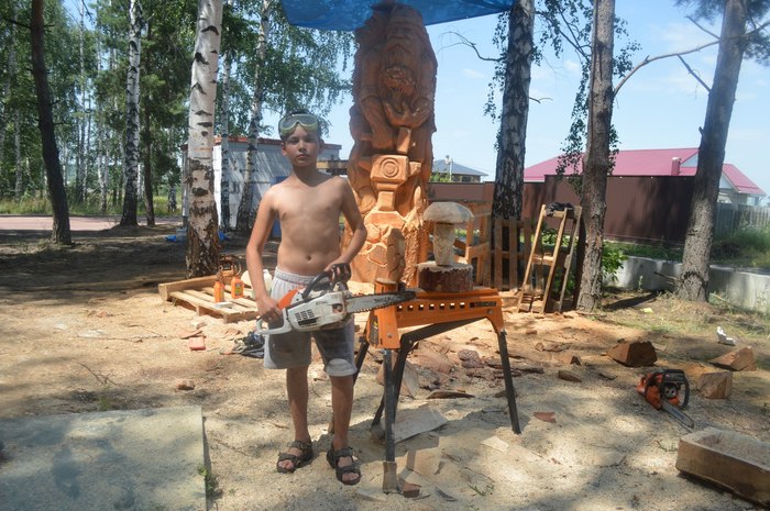 Что дальше? Я скажу. В конце апреля Данила-мастер станет самым молодым участником фестиваля деревянной парковой скульптуры «Битва бензопил» (20 резчиков, 11 регионов). Кто допустил? Да снова я. Просто я этот фестиваль придумал, спонсоров нашел, территорию. Я его и тащу в участники. Организаторы покачали головами (как качают ВСЕ, знакомые с ситуацией), и сказали: «Ну, под твою ответственность!» Как будто мало мне будет там ответственности….. (замазал место и время, а то опять в рекламе обвинят)