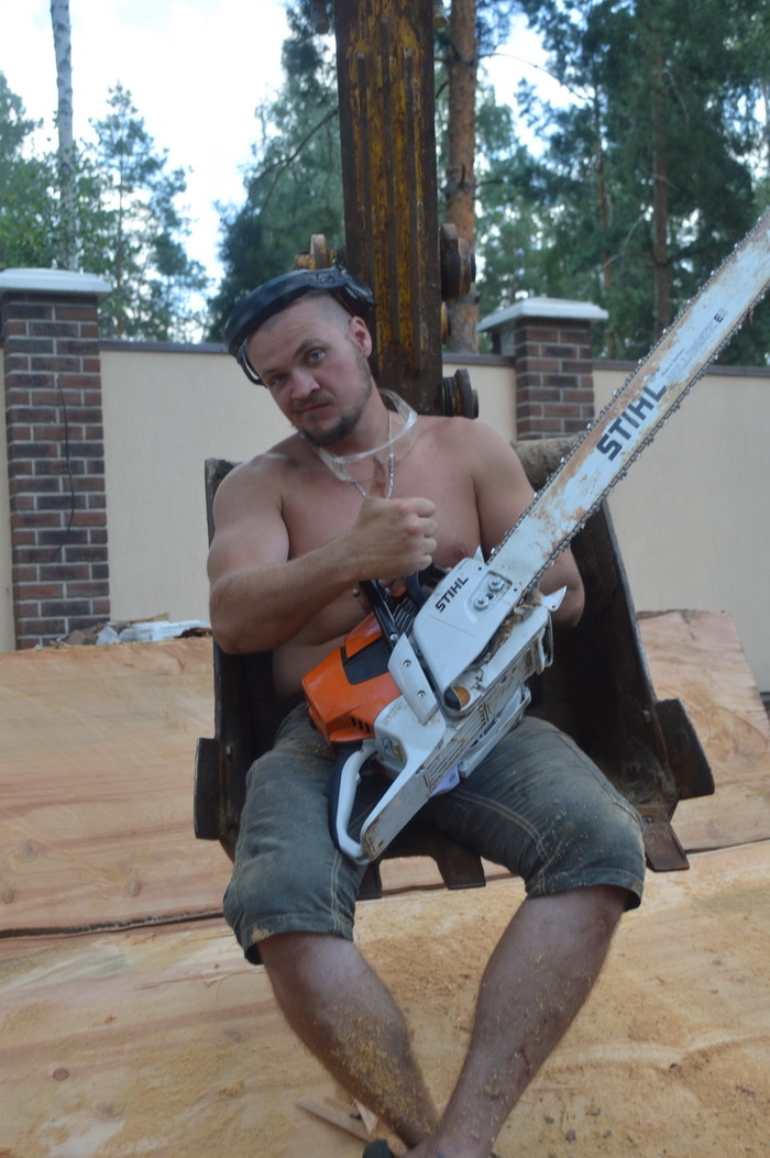 Я постоянно заставлял его надевать защиту, а он ее сбрасывал, Как только я отвернусь. Я говорил ему не пилить в шлепанцах, чтоб уйти домой с пальцами на ногах. А он все равно на следующий день приходил в тапках. Я постоянно краем глаза смотрел, КАК он держит инструмент и правильно ли (безопасно ли) направляет пропилы. Я материл себя последними словами, спрашивая НА ФИГА?! Мне и так не просто! Вот сумерки уже, не успеваю. А он бегает вокруг и вспышкой от фотка в глаза долбит. Развлекается…