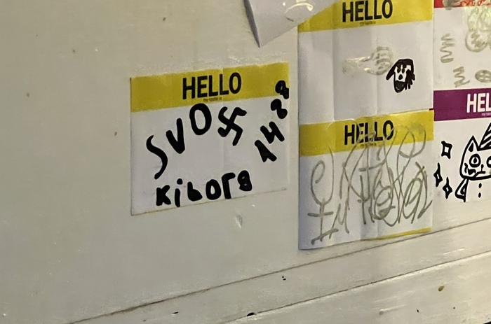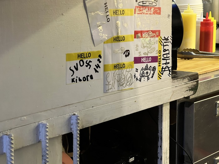 Была в заведении "Дежурная рюмочная" на Новом Арбате и там висит такой стикер. Спросила у охраны, что это такое, они отшутились в стиле - это нормально. И это не внутреннее помещение, это прям у барной стойки.