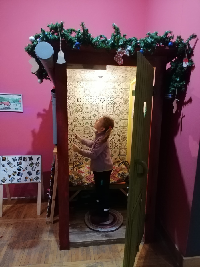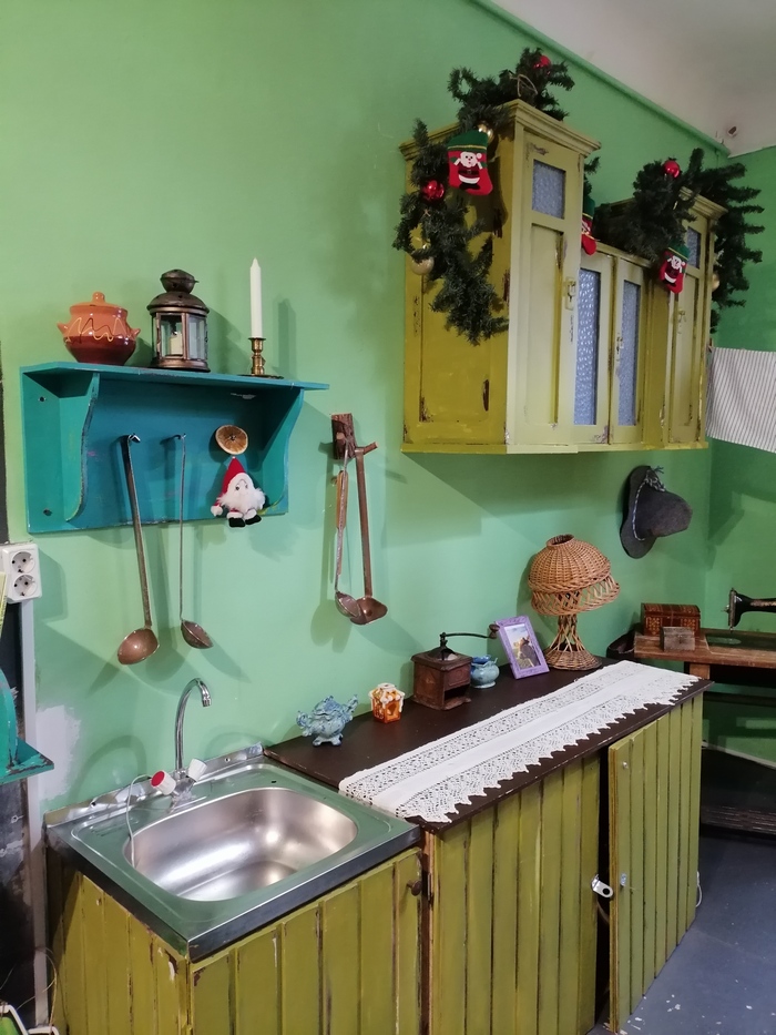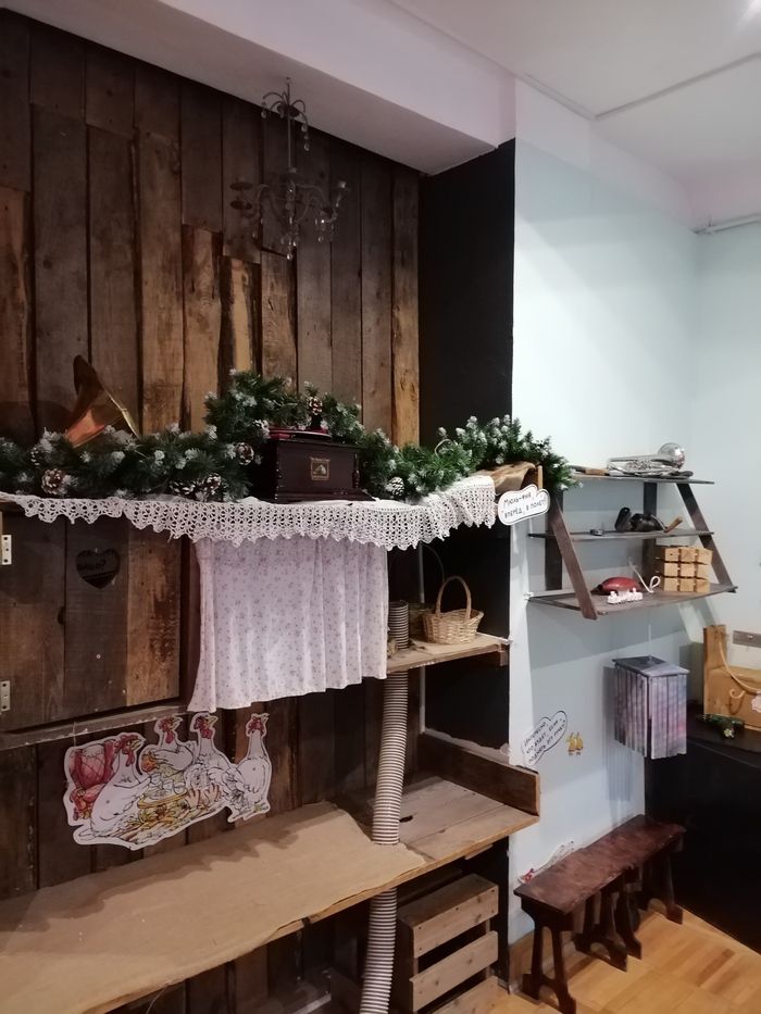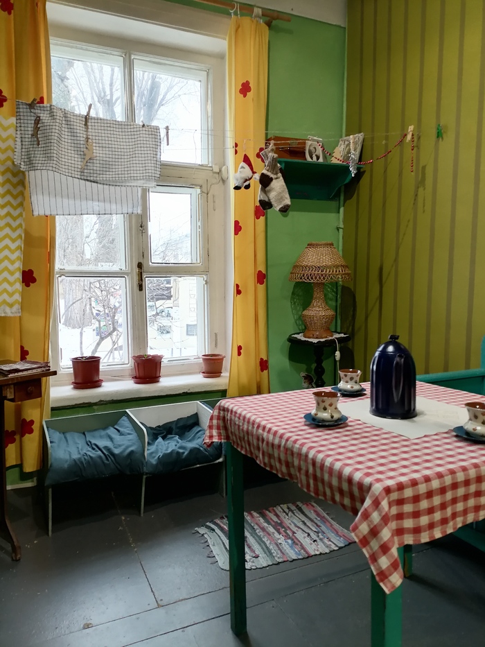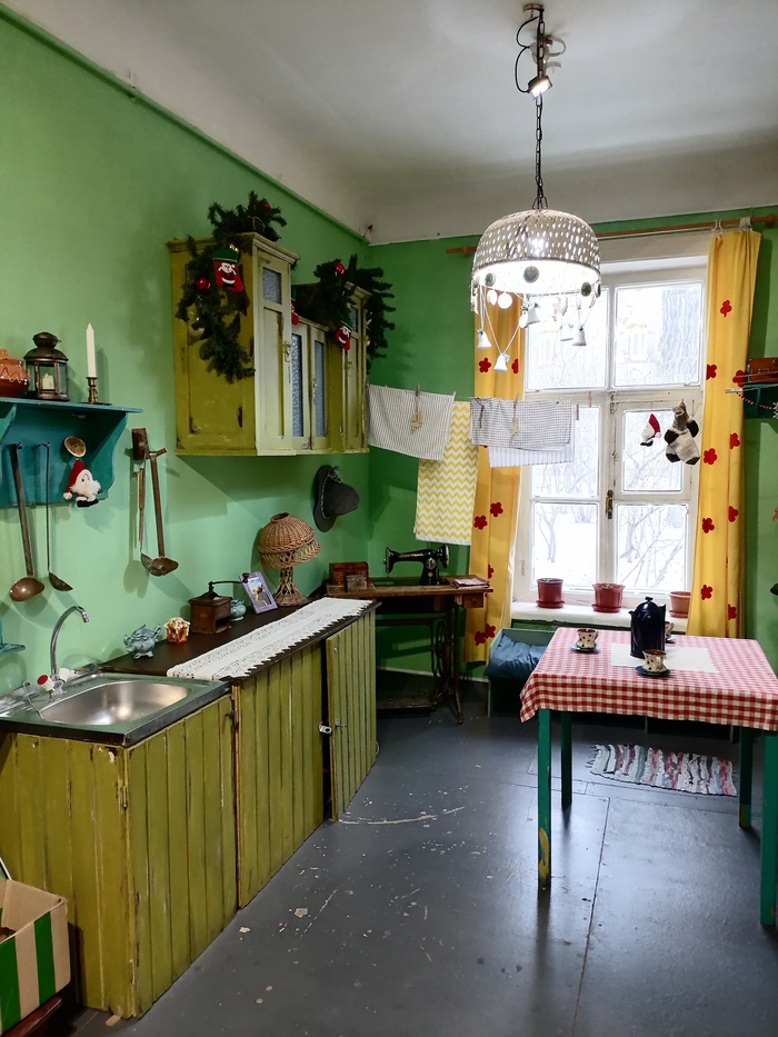 Дальше проходим в кухню, оборудованную по иллюстрациям Нурдквиста. Музей интерактивный, всё можно потрогать, посидеть за столом.