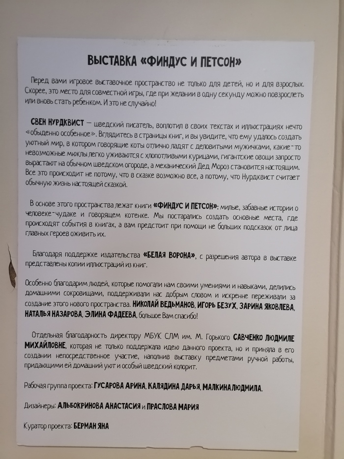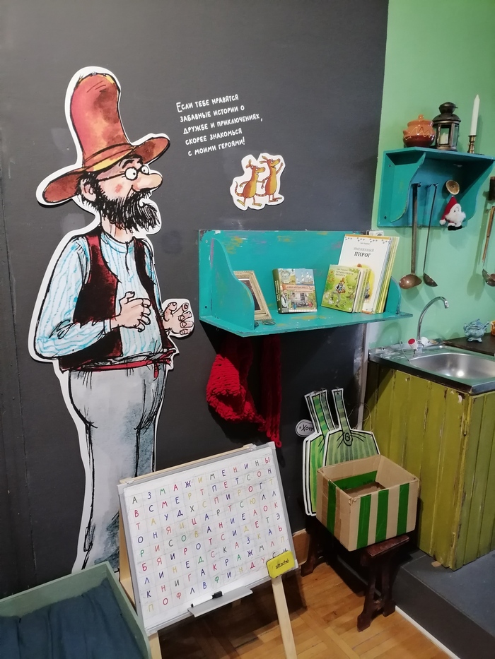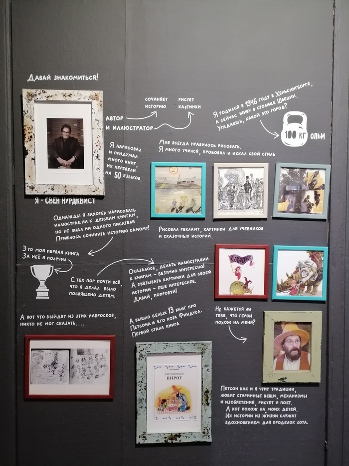 Мы с дочкой очень любим серию книг Свена Нурдквиста про дружбу человека с котом. И кто бы мог подумать, что у нас в Самаре есть маленький музей, посвящённый им! Узнали случайно и сразу рванули смотреть. Это на базе литературного музея А.Н. Толстого. На входе встречает главный персонаж и краткая биография автора.