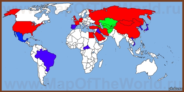 Красные - страны которые были или являются сверхдержавами(Некоторые были империями) зеленые - тимурды Синие- страны которые были Империи