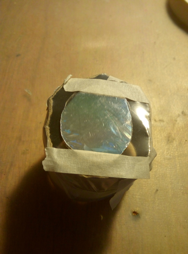 Вырезаем из диска "зеркало" и клеим к пленке.