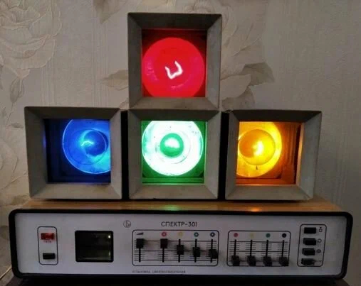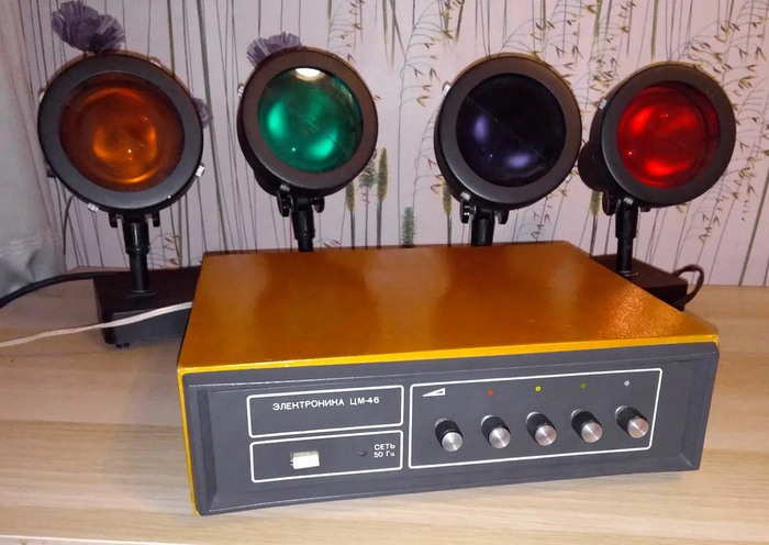 Устройство светового сопровождения музыки "Электроника ЦМ-46". С 1984 года выпускали в Саратове. Цена225 рублей.