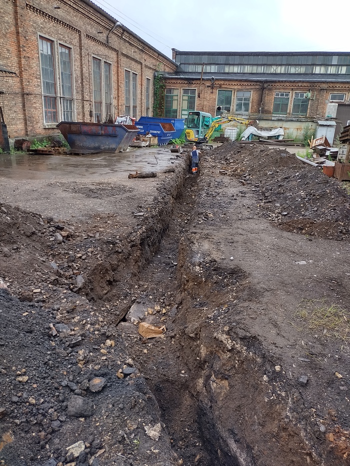 Так что начались очередные поиски помещения. Было найдено посещение вдвое большей площади за схожую сумму, правда требующее приложение рук. Летом было поменьше работы, и мы решили что попробуем приложить руки. А именно протяжка санитарной линии, и врезка ворот необходимого размера в стену цеха. Пока ждали поставки ворот начали водопровод: