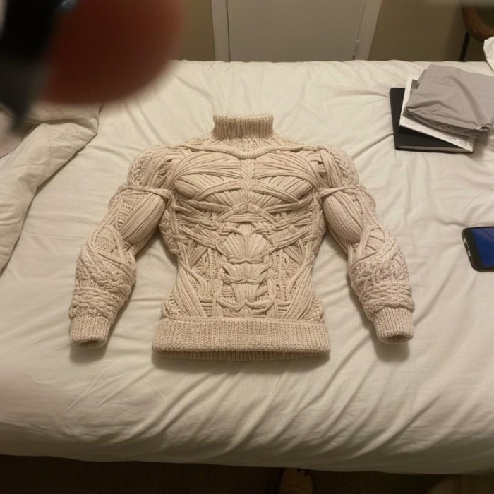 Свитер получается абсолютно неколючий, очень теплый, толстый и тяжелый. Есть нюансы в стирке, но там ничего страшного - стирать в мешке для стирки на режиме шерсть и сушить горизонтально.