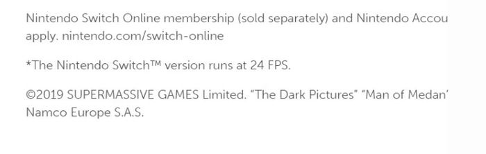 Интересно, что на Nintendo Switch хоррор The Dark Pictures Anthology: Man of Medan работает с частотой 24 кадра в секунду. Именно такая аннотация есть на сайте: