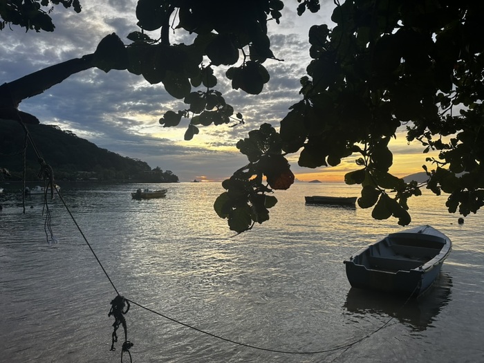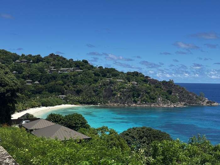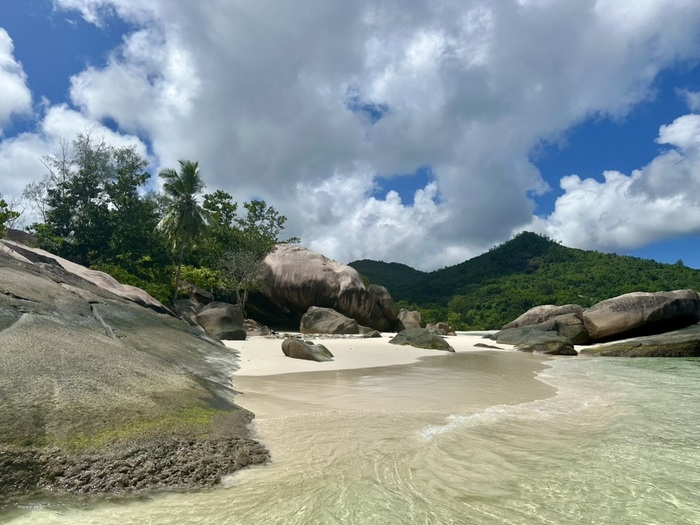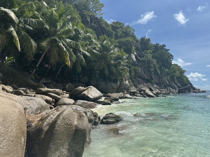 Последние 2 дня мы решили выдохнуть и просто валяться на пляже. В списке оставался один из красивейших пляжей Сейшел Petite Anse. Дорога повторяла путь на Anse Soleil, просто за километр до пляжа надо было через КПП пройти на территорию отеля Four Seasons, а не повернуть к Anse Soleil. На КПП мы быстро заполнили маленькую электронную анкету, получили гостевые браслеты и двинулись с горки на пляж. Пляж реально красивый, небольшой, с небольшими волнами и узкой полоской коралловых камней, через которую лучше переходить в коралках, про которые никто нигде не писал (третье место нашего рейтинга)!