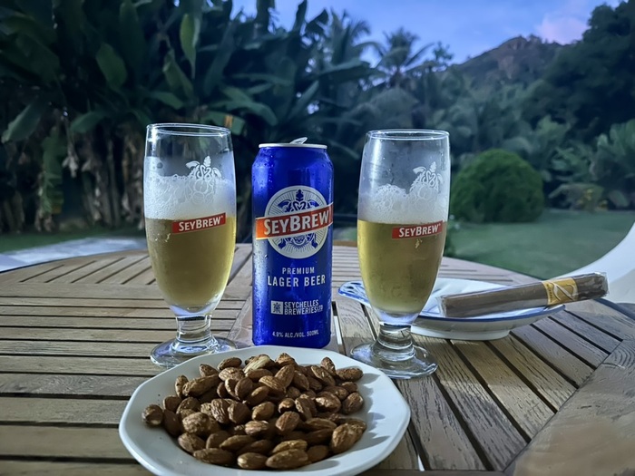 У входа на пляж расположилось кафе, а так как у нас к этому времени закончились запасы воды, мы взяли два холодных пива и, выпив их практически залпом, коснулись уставшими ногами сейшельского песочка! Хоть по дороге на пляж и был один из самых крутых спусков, которые мы встречали на острове (а потом еще был подъём в эту горку), Anse Soleil для меня до сих пор на втором месте! Очень маленький и красивый пляж с отличной водой, волнами и классным входом в воду без камней. Искупались, позагорали, кайфанули.