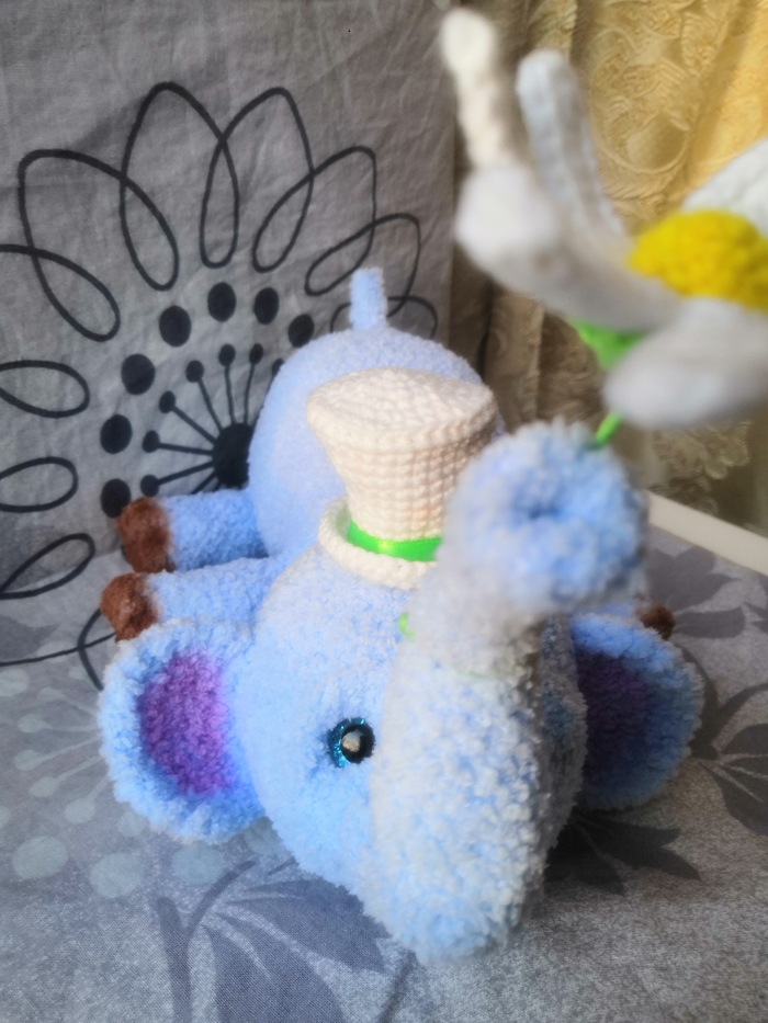 Слоник🐘 получился довольно большой 26 см в длину, 15 см в высоту с учётом хобота с цветочком🌼🐝.