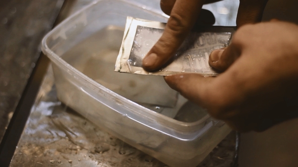Все просто. Для травления электролизом нам понадобится насыщенный солевой раствор. А это значит, что нужно добавлять соль в воду до того, пока она не перестанет растворяться. Это нужно для увеличения токопроводности воды.