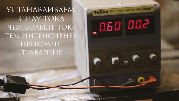 При моем варианте травления, результат я получил за 30 минут травления при силе тока в 0.5А.