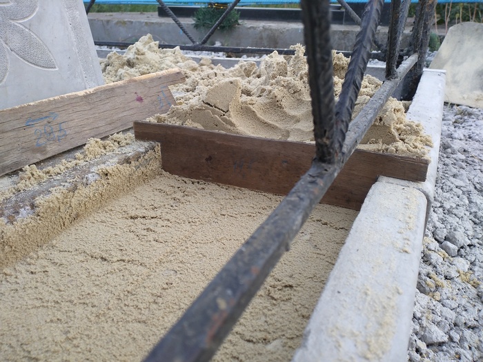 Песок даёт нехилую усадку. В данном случае 5-6 см.