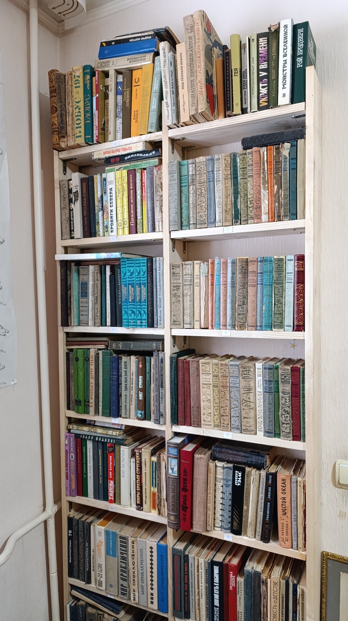 Книги, в основном, покупали в "Букинисте". У нас в Перми очень хорошая сеть букинистических магазинов, мы с сыном туда регулярно ходим. Есть, конечно, и новые книги, но они в книжном шкафу стоят, а стеллаж практически весь для букинистики.