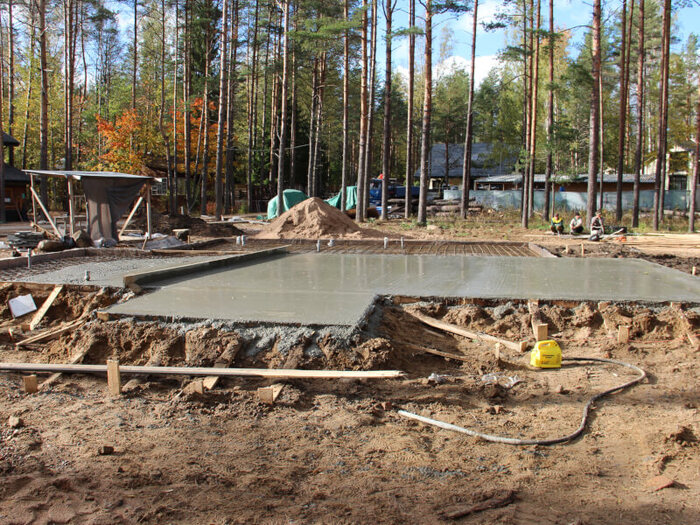 Монолитные фундаменты могут служить основанием и полом первого этажа, экономя на устройстве стяжки.
