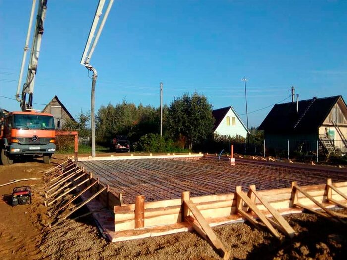 Монолитный фундамент обеспечивает долговечность, равномерную нагрузку на грунт и высокую плотность.